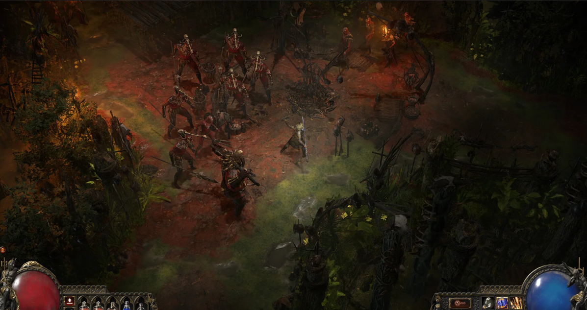 The core idea behind the Varashta Djinn Sorceress is simple: Djinn provide consistent damage while spectres carry a large portion of single-target output. Early progression uses Cultist Archer spectres in Freythorn, transitioning into Vaal Guards with grenades from Utzaal until Interlude 3. At Etched Ravine, the build upgrades into Powered Zealot spectres with Spark, typically costing around 55 spirit.