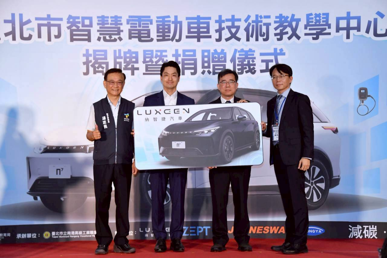 此次揭牌活動中,納智捷企業也特別捐贈百萬級LUXGEN n7純電動休旅車,以及動力系統、充電樁與專業工具組,為學生提供完整的實作環境。蔣萬安強調,投資下一代即是投資臺北未來,這次示範是技職教育與產業結合的重要里程碑,市府將持續打造堅實的技職教育基底,確保源源不絕的人才輸出,提升臺灣整體產業競爭力。