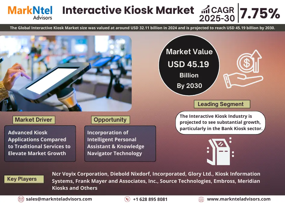 MarkNtel Advisors, a leading market research and consulting firm, has announced the release of its latest study titled “Interactive Kiosk Market Analysis, 2025–2030.”