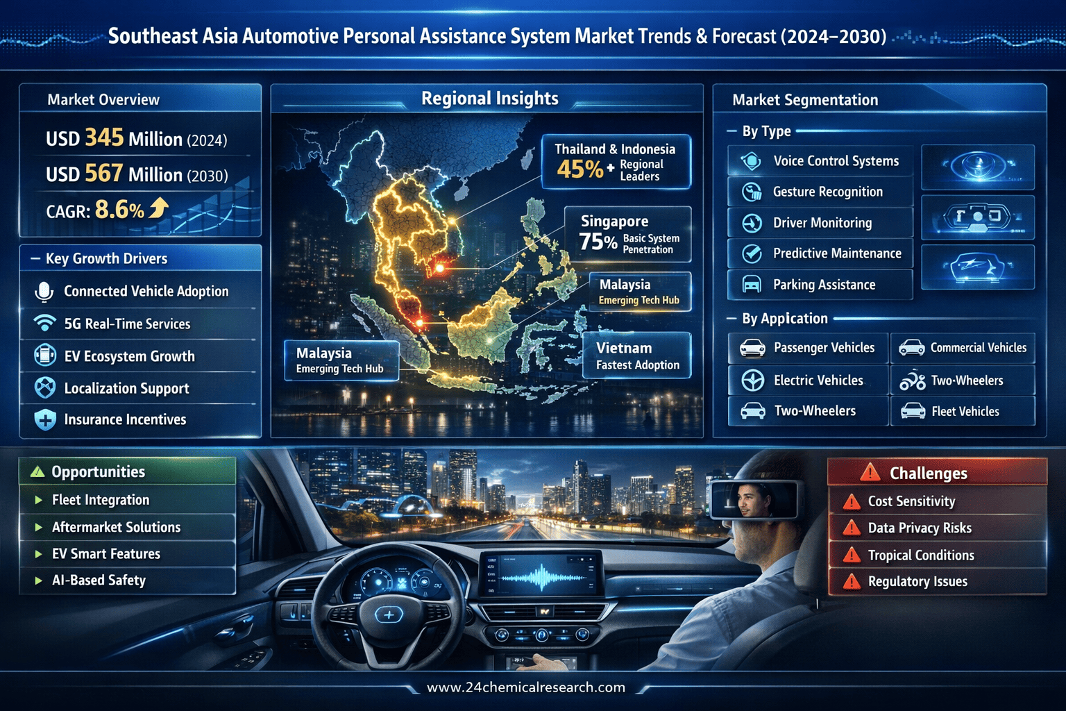 According to 24Chemical Research, Southeast Asia Automotive Personal Assistance System Market was valued at USD 345 million in 2024 and is projected to reach USD 567 million by 2030, at a CAGR of 8.6% during the forecast period 2024-2030.
