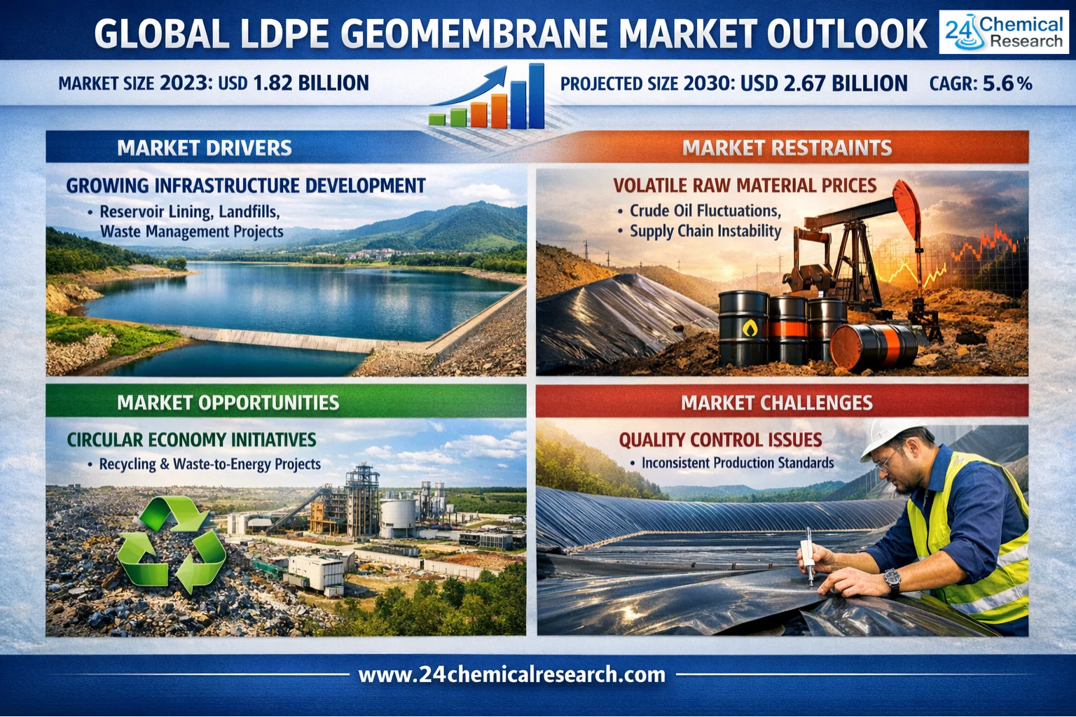 Is Global LDPE Geomembrane essential for water reservoirs 28% market share growth? Global LDPE Geomembrane market represents a critical segment within the geosynthetics industry, valued at USD 2.54 billion in 2024 according to recent market analysis. With increasing demand from waste management, mining, and water containment applications, the market is projected to grow at a robust CAGR of 5.8% through 2032, potentially reaching USD 4.12 billion. This growth trajectory reflects the material's vital role in environmental protection and infrastructure development worldwide. Download FREE Sample Report: https://www.24chemicalresearch.com/download-sample/261751/global-ldpe-geomembrane-forecast-market-2024-2030-129Is Global LDPE Geomembrane essential for water reservoirs 28% market share growth?