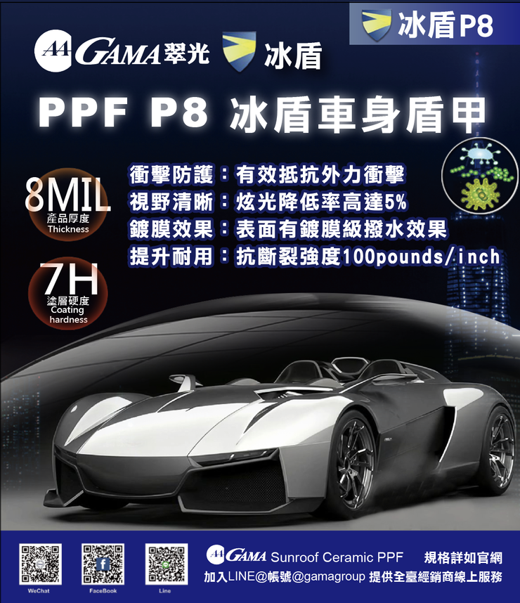 ● 高速行駛或複雜環境:建議選擇 8mil 厚度的產品,例如 GAMA冰盾 PPF P8。