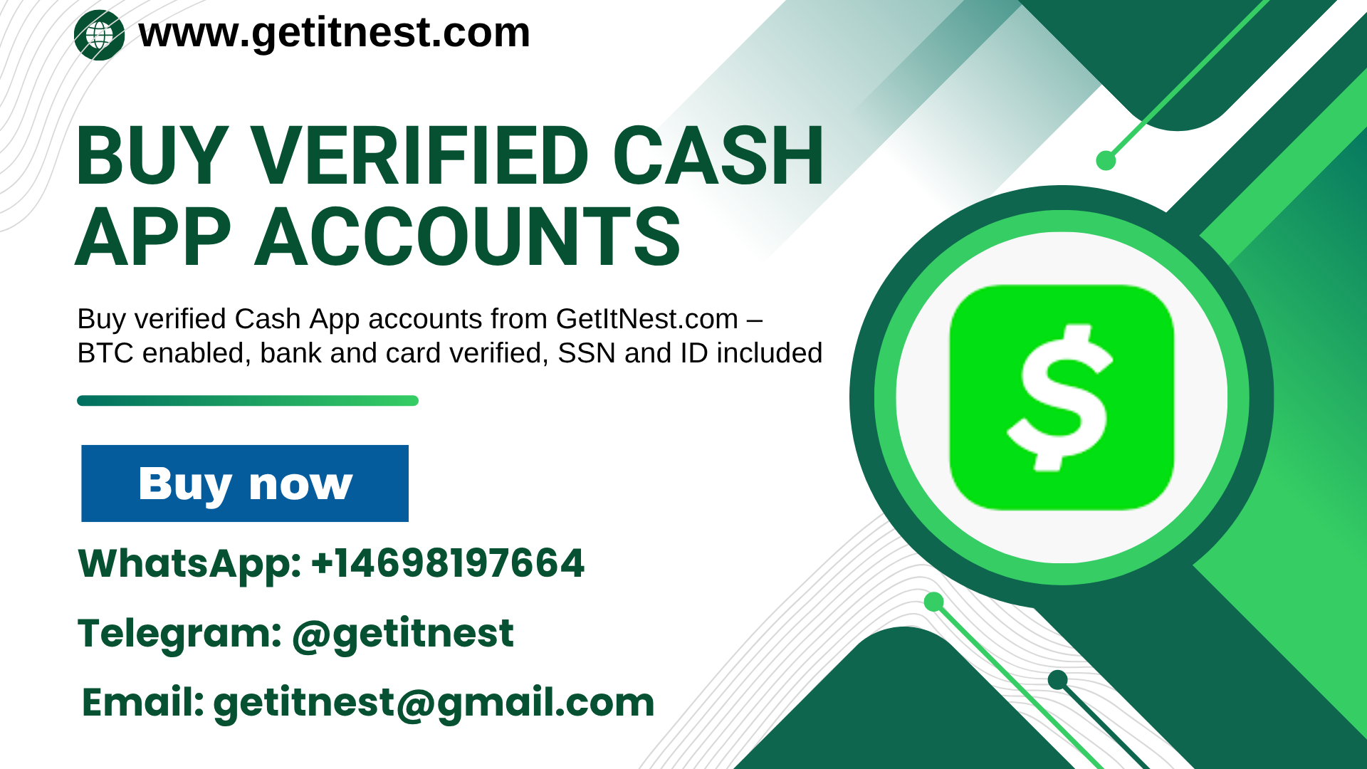 Buy verified Cash App accounts from GetItNest.com – BTC enabled, bank and card verified, SSN and ID included. Perfect for personal use, business, or crypto transactions.