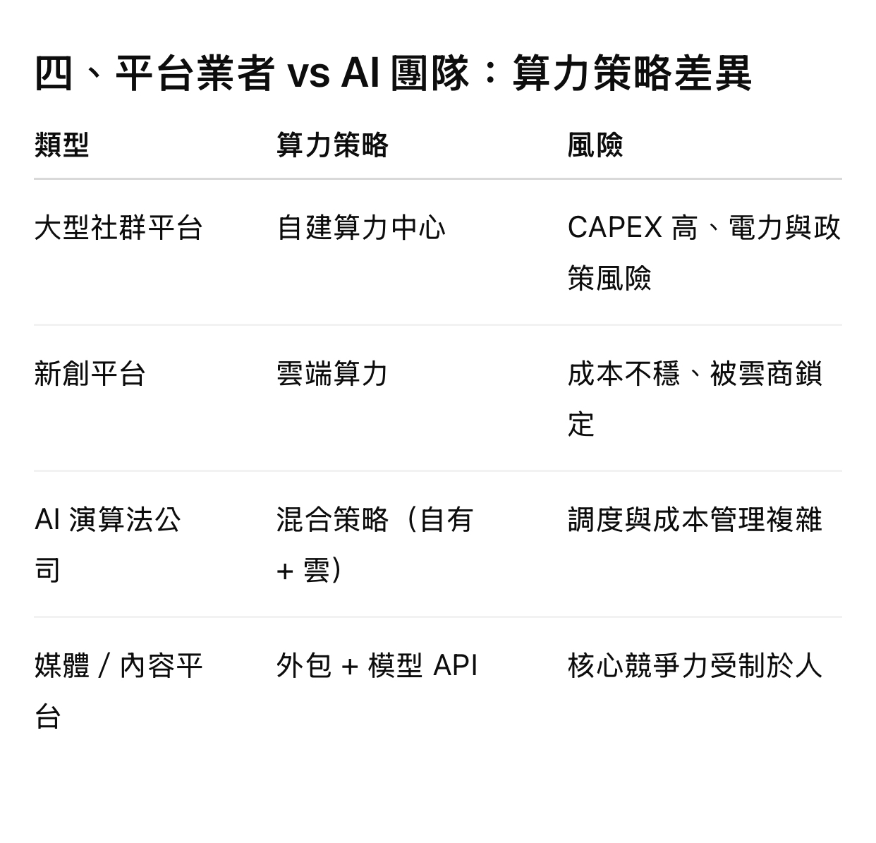 算力中心對社群平台與 AI 模型不是「IT 成本」,而是「核心生產力」。