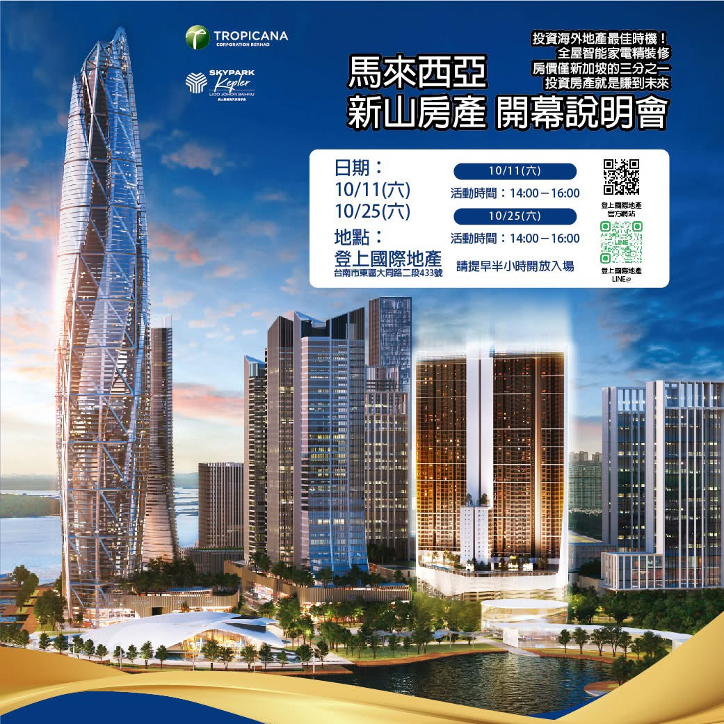 ✅馬來西亞麗陽集團啟動柔佛新山163英畝綜合開發計畫 旗艦建案Lido SkyPark正式開賣!引爆投資熱潮!!