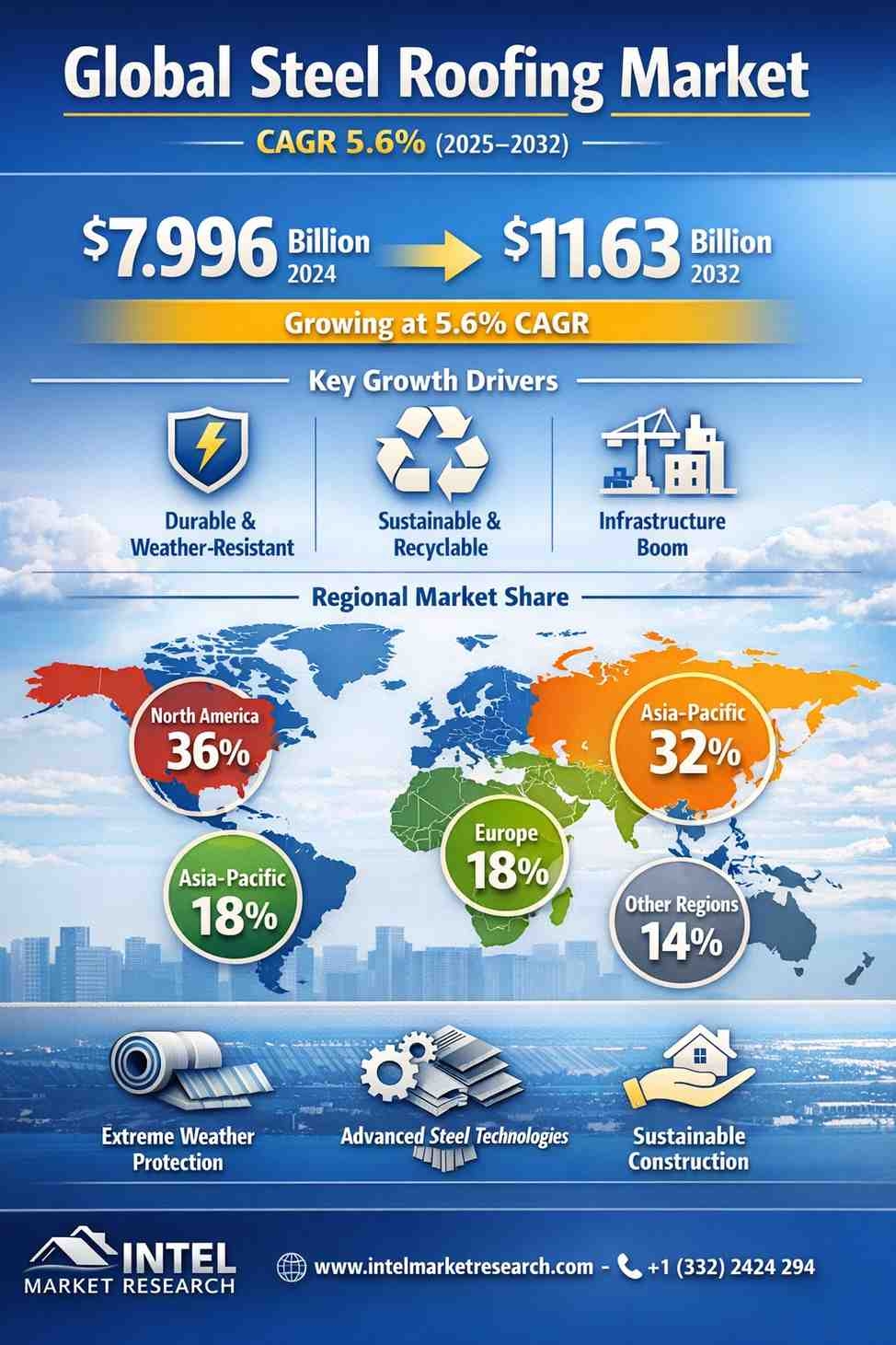 Global Steel Roofing Market | CAGR 5.6% (2025–2032)