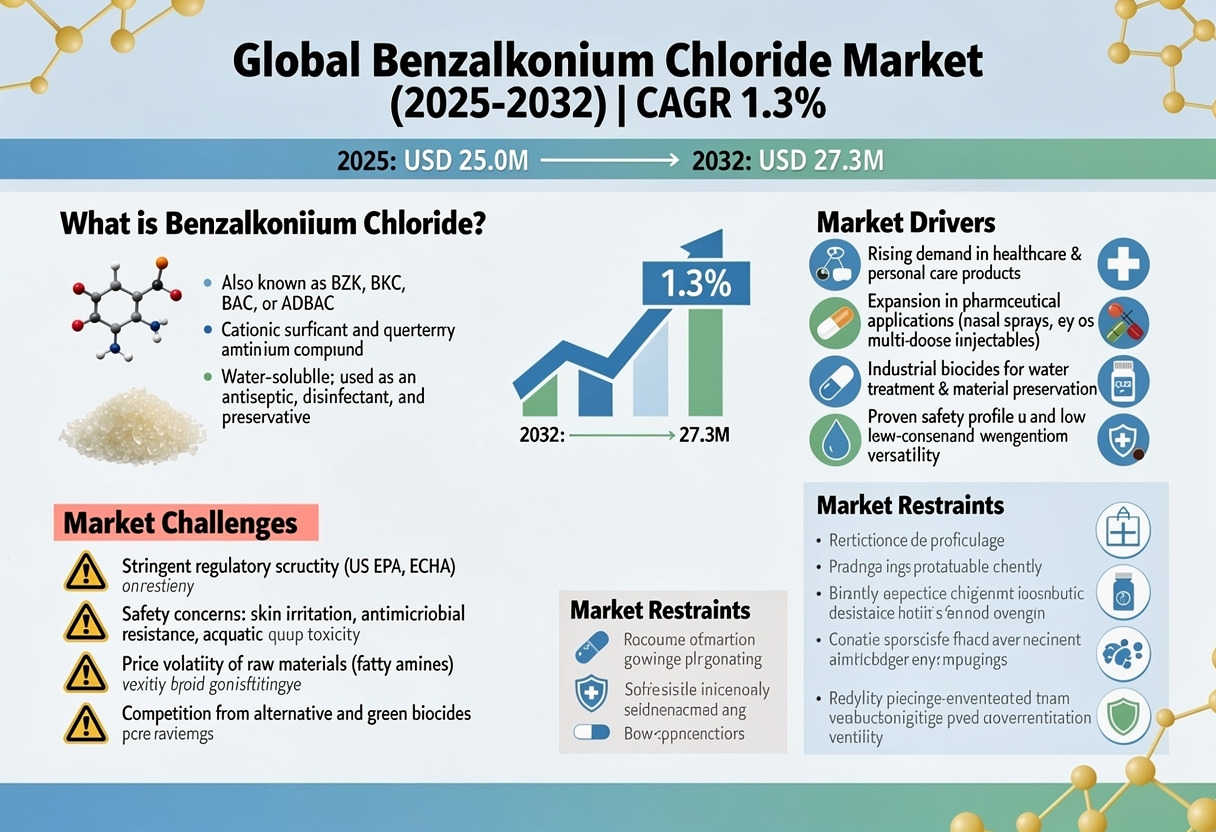 Global Benzalkonium Chloride Market (2025–2032) | CAGR 1.3%