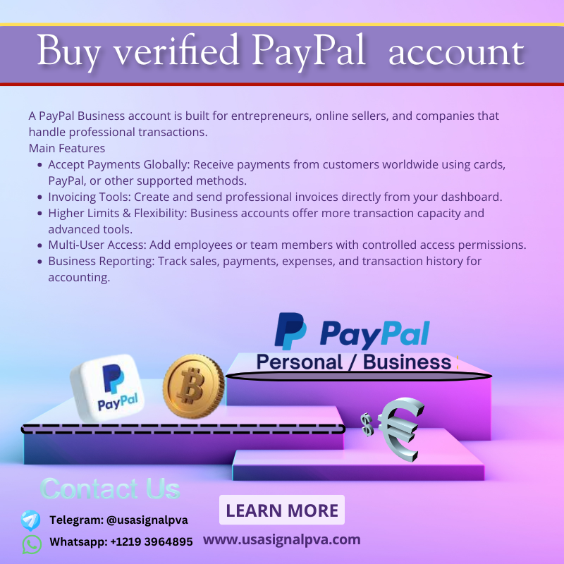 Verified PayPal Account: Everything You Need to Know If you want more information,j ust contact us now. 24 Hours Reply/Contact ●Telegram:@usatrustacc ●WhatsApp:+1 (667) 206_8019‪ ●Email:usatrustacc@gmail.com A Verified PayPal account is an essential tool for anyone involved in online transactions, e-commerce, or digital payments. PayPal is one of the most widely used online payment systems, enabling secure, fast, and convenient money transfers globally. Verification increases your account’s credibility, lifting transaction limits, and allowing access to additional features. Understanding how to get a verified PayPal account, its benefits, and best practices is crucial for personal users, freelancers, and businesses alike. What is a Verified PayPal Account? A Verified PayPal account is a PayPal account that has completed the identity and financial verification process. Verification ensures that the account belongs to a legitimate user, protecting both buyers and sellers. Verified accounts typically have higher transaction limits, reduced risk of restrictions, and improved trustworthiness for other users. If you want more information,j ust contact us now. 24 Hours Reply/Contact ⭐⭐⭐⭐⭐⭐⭐⭐⭐⭐ ✅Telegram:@usatrustacc ●●── ●●── ●●── ●●── ●● ✅WhatsApp:+1 (667) 206_8019‪ ●●── ●●── ●●── ●●── ●● ✅Email:usatrustacc@gmail.com ⭐⭐⭐⭐⭐⭐⭐⭐⭐⭐👉📩📢🔗🤳📶💼 PayPal verifies accounts primarily through linking and confirming bank accounts, credit/debit cards, and in some cases, identity documents such as a government-issued ID or proof of address. Once verified, PayPal shows a “Verified” status, signaling reliability to other users. Types of PayPal Accounts PayPal offers two main types of accounts, both of which can be verified: Personal Account – Suitable for individuals sending or receiving money, making online purchases, and withdrawing funds. Personal accounts can be upgraded to verified accounts by linking a bank account or card. Business Account – Designed for merchants, businesses, and e-commerce sellers, business accounts offer advanced features such as multi-user access, invoicing, and API integration. Verification is highly recommended to unlock all features and increase credibility with customers. How to Verify a PayPal Account The process to verify a PayPal account is straightforward but may vary slightly depending on your country. Common methods include: Bank Account Verification – Link your bank account to PayPal, and PayPal will make two small deposits. Confirm the deposit amounts to complete verification. Credit or Debit Card Verification – Link a card to your account. PayPal charges a small refundable fee, which comes with a unique code. Enter this code on PayPal to verify your card. Identity Verification – In some countries or for higher transaction limits, PayPal may require uploading a government-issued ID or proof of address. Once verification is complete, the account will display a “Verified” status, signaling that PayPal has confirmed your identity and financial information. Benefits of a Verified PayPal Account Having a verified PayPal account comes with numerous advantages: Higher Transaction Limits – Verified accounts can send and receive larger amounts compared to unverified accounts. Increased Trust and Credibility – Buyers and sellers are more likely to transact with verified accounts, reducing the risk of fraud. Access to All PayPal Features – Certain features, such as receiving international payments or integrating with e-commerce platforms, are available only to verified accounts. Enhanced Security – Verification adds an extra layer of protection against unauthorized access or account limitations. Smooth Online Transactions – Verified accounts face fewer restrictions when sending money, withdrawing funds, or making purchases online. Common Challenges and Solutions While verifying a PayPal account is generally straightforward, some users may face issues: Unsuccessful Verification – Ensure your bank account or card is active, and details match your PayPal account. Limitations on Accounts – If PayPal places a hold or limit, follow the instructions to submit identity documents promptly. Country Restrictions – Certain verification methods may not be available in all countries; consult PayPal’s local website for guidance. Best Practices for Using a Verified PayPal Account To make the most of a verified PayPal account, consider these tips: Keep Account Information Updated – Ensure your email, bank account, and card details are current. Enable Two-Factor Authentication (2FA) – Add an extra layer of security to protect your account. Regularly Monitor Transactions – Check your account activity to detect unauthorized transactions quickly. Avoid Sharing Login Credentials – Never share your PayPal password or security codes to prevent fraud. Use Verified Accounts for Business – Verified accounts enhance trust when accepting payments from customers. PayPal Verification for Businesses For businesses, verification is even more critical. A verified PayPal Business Account allows merchants to: Accept payments from credit cards, debit cards, and PayPal users worldwide. Integrate PayPal with e-commerce platforms like Shopify, WooCommerce, and BigCommerce. Access detailed transaction reports and analytics. Increase customer confidence by showing that the business is trustworthy and secure. Conclusion A Verified PayPal Account is more than just a status—it’s a gateway to secure, flexible, and trusted online transactions. Verification not only increases transaction limits and security but also builds credibility with buyers and sellers globally. Whether you are an individual user, freelancer, or business owner, having a verified account enhances your PayPal experience, allowing smooth financial operations across 