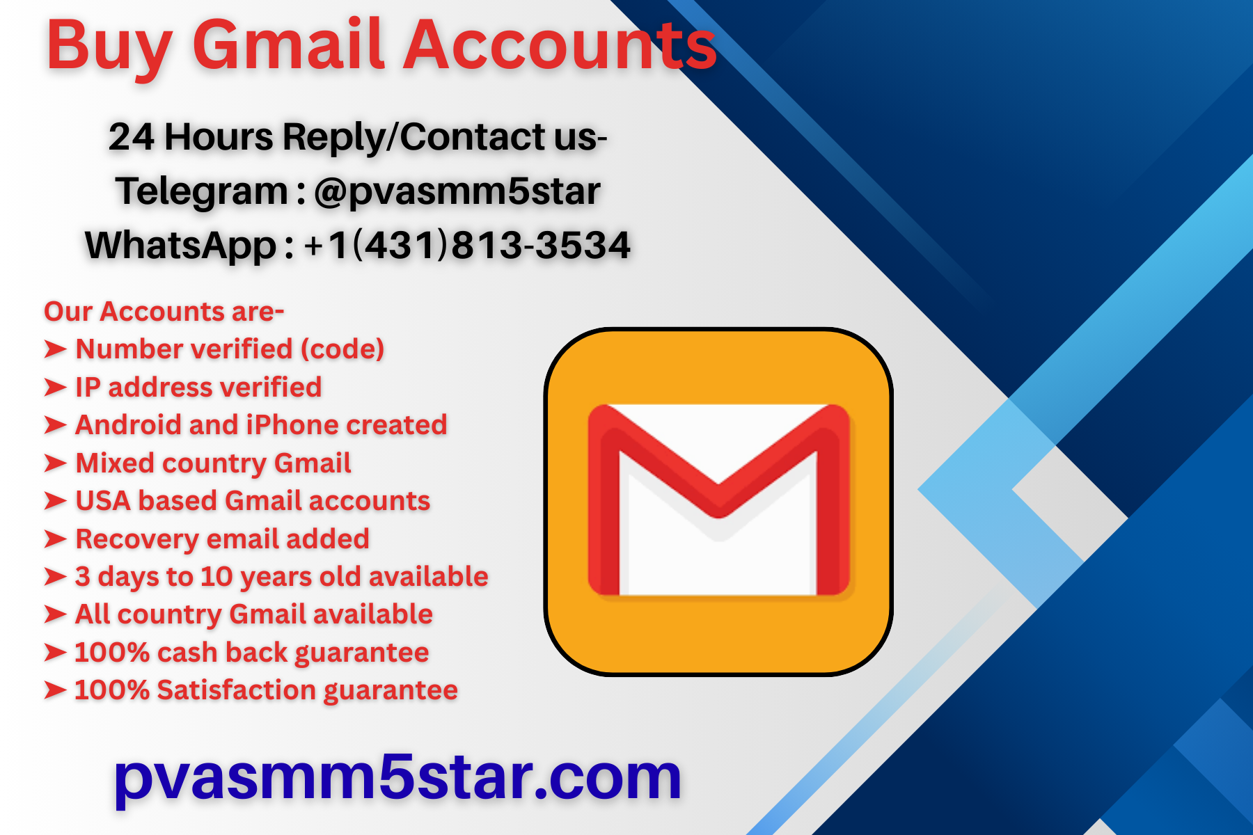 Buy Gmail Accounts Telegram : @pvasmm5star WhatsApp : +1(431)813-3534 Email : pvasmm5star@gmail.com https://pvasmm5star.com/product/buy-gmail-accounts/ #pvasmm5star #seo #usaaccounts #seoservice #socialmedia #contentwriter #on_page_seo #off_page_seoBuy Gmail Accounts
